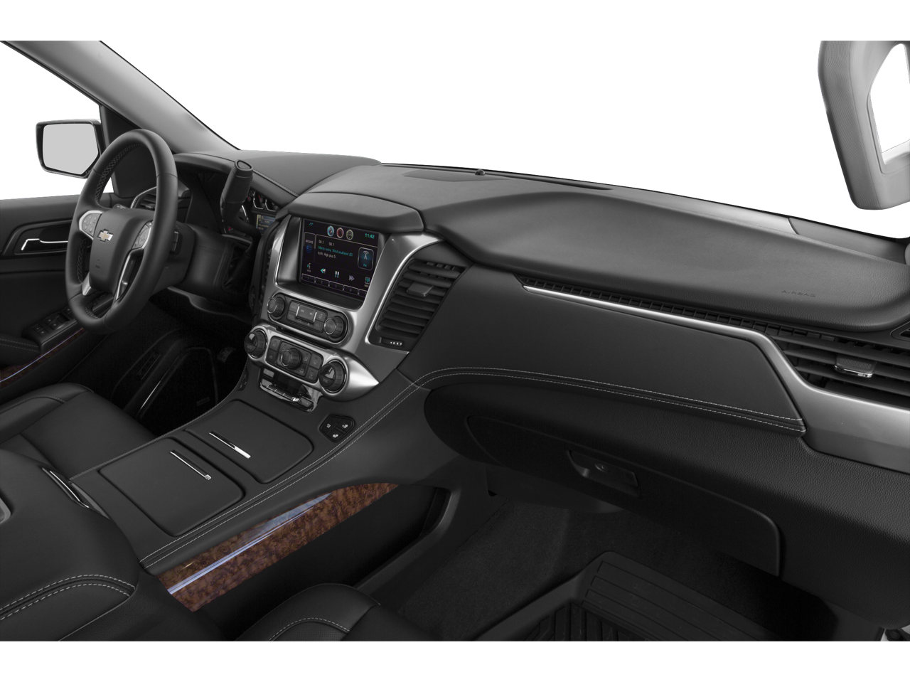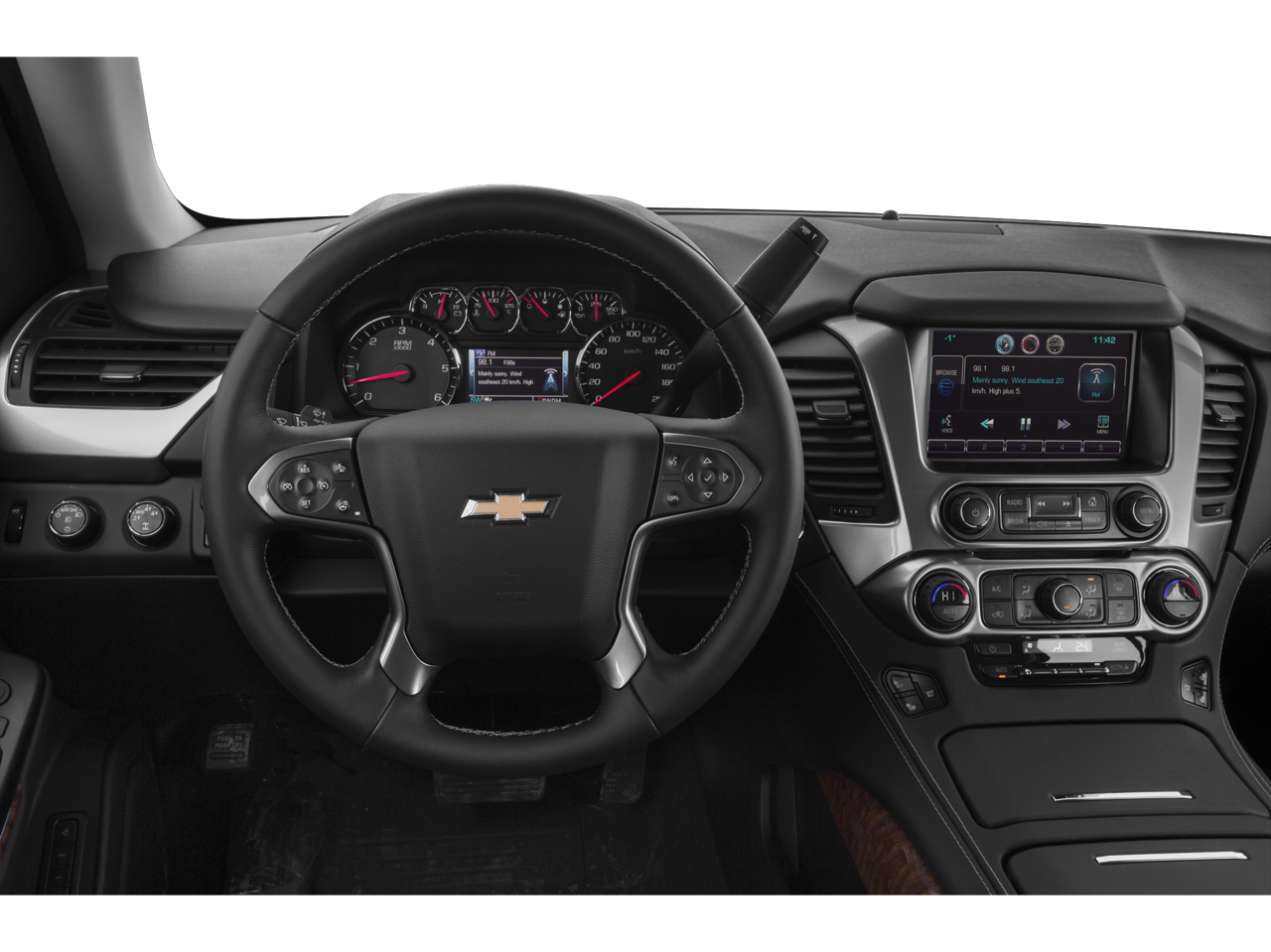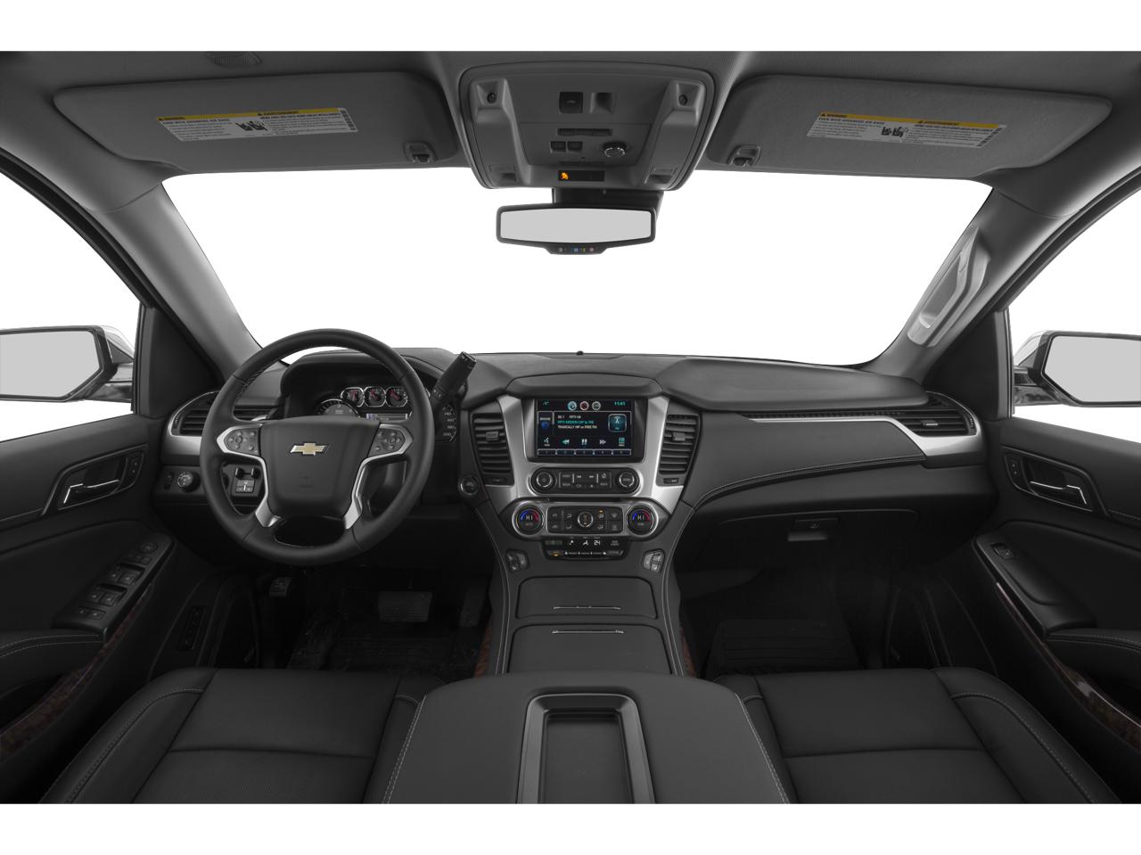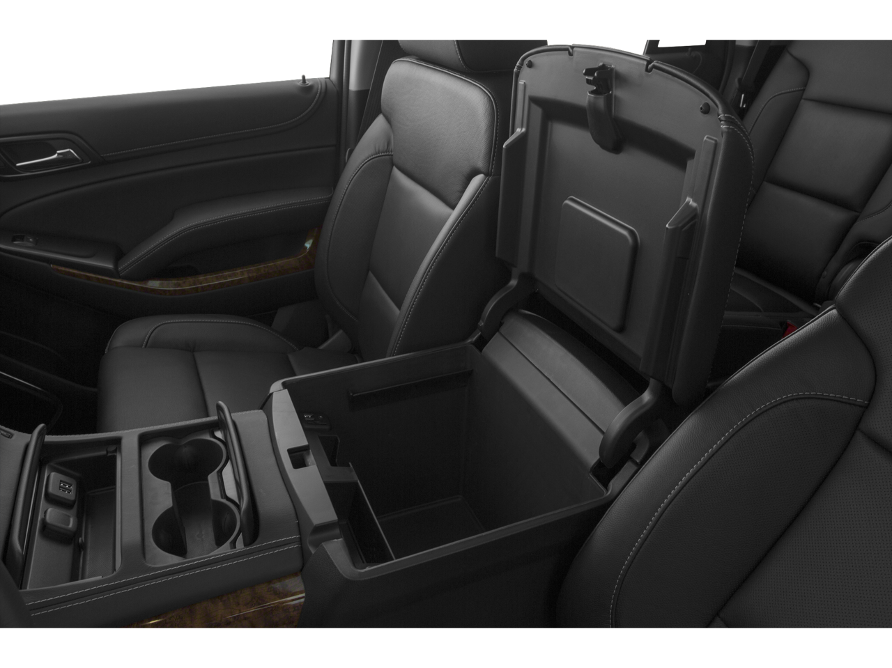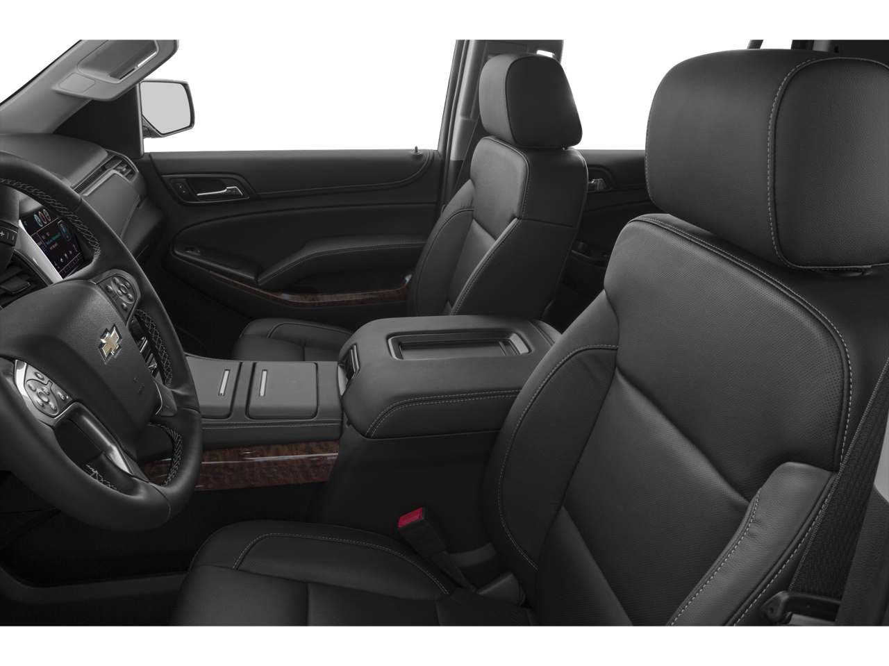 License Plate Front Mounting Package, Magnetic Ride Control Suspension Package, Max Trailering Package (Integrated Trailer Brake Controller), Preferred Equipment Group 1LZ (3rd Row 60/40 Power Fold Split-Bench, 5 12-Volt Auxiliary Power Outlets, Auto-Dimming Inside Rear-View Mirror, Bose Centerpoint Premium 10-Speaker Surround Sound, Driver Inboard & Front Passenger Airbags, Floor Console, Fog Lamps, Forward Collision Alert, Front & Rear Parking Assist, Hands Free Power Liftgate, Heated 2nd Row Seats, Heated Leather Wrapped Steering Wheel, Heavy-Duty Rear Locking Differential, Keyless Start Switch, Lane Departure Warning & Safety Alert Seat, Memory Settings, Passive Entry System, Power Adjustable Pedals, Power Release 2nd Row Bucket Seats, Power Tilt & Telescoping Steering Column, Power-Folding Heated Outside Mirrors, Rear Cross-Traffic Alert, Remote Keyless Entry, Side Blind Zone Alert w/Lane Change Alert, Universal Home Remote, and Wireless Charging), Cocoa/Dune Leather, 10 Speakers, 3rd row seats: split-bench, 4-Wheel Disc Brakes, ABS brakes, Adaptive suspension, Adjustable pedals, Air Conditioning, Alloy wheels, AM/FM radio: SiriusXM, Auto-dimming door mirrors, Auto-dimming Rear-View mirror, Automatic temperature control, Bluetooth® For Phone, Bodyside moldings, Brake assist, Bumpers: body-color, CD player, Compass, Delay-off headlights, Driver door bin, Driver vanity mirror, Dual front impact airbags, Dual front side impact airbags, Electronic Stability Control, Emergency communication system: OnStar Directions & Connections, Exterior Parking Camera Rear, Front anti-roll bar, Front Bucket Seats, Front Center Armrest, Front dual zone A/C, Front fog lights, Front Heated Reclining Bucket Seats, Front reading lights, Front wheel independent suspension, Fully automatic headlights, Garage door transmitter, Heated & Cooled Driver & Front Passenger Seats, Heated door mirrors, Heated front seats, Heated rear seats, Heated steering wheel, High-Intensity Discharge Headlights, Illuminated entry, Low tire pressure warning, Memory seat, Navigation System, Occupant sensing airbag, Outside temperature display, Overhead airbag, Overhead console, Panic alarm, Passenger door bin, Passenger vanity mirror, Pedal memory, Perforated Leather-Appointed Seat Trim, Polished Exhaust Tips, Power door mirrors, Power driver seat, Power Liftgate, Power passenger seat, Power steering, Power windows, Premium audio system: Chevrolet MyLink, Radio: Chevrolet MyLink w/Navigation/AM/FM Stereo, Rain sensing wipers, Rear air conditioning, Rear anti-roll bar, Rear reading lights, Rear window defroster, Rear window wiper, Remote keyless entry, Roof rack: rails only, Security system, Set of 4 Wheel Locks (LPO), Single-Slot CD/MP3 Player, SiriusXM Satellite Radio, Speed control, Speed-sensing steering, Split folding rear seat, Spoiler, Steering wheel memory, Steering wheel mounted audio controls, Tachometer, Telescoping steering wheel, Tilt steering wheel, Traction control, Trip computer, Turn signal indicator mirrors, Variably intermittent wipers, Ventilated front seats, Voltmeter, Wheels: 20 x 9 Polished-Aluminum, and Wheels: 22 Premium Painted w/Chrome Inserts.