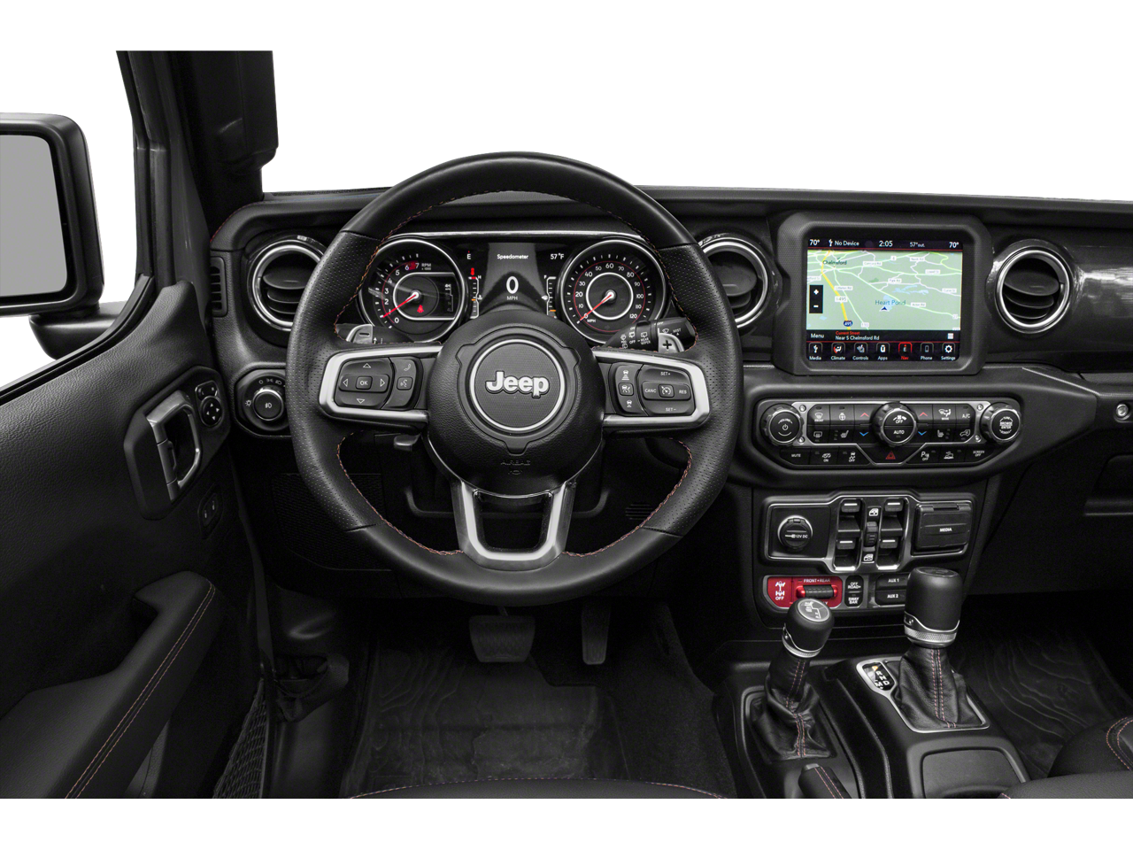 Quick Order Package 27X, Trail Rail Management System (Cargo Compartment Floor Mat), 3.73 Rear Axle Ratio, 4-Wheel Disc Brakes, 9 Speakers, ABS brakes, Air Conditioning, Alloy wheels, AM/FM radio: SiriusXM, Apple CarPlay/Android Auto, Auto High-beam Headlights, Auto-dimming Rear-View mirror, Automatic temperature control, Body Color 3-Piece Hard Top, Brake assist, Compass, Delay-off headlights, Driver door bin, Driver vanity mirror, Dual front impact airbags, Dual front side impact airbags, Electronic Stability Control, Emergency communication system: SiriusXM Guardian, Freedom Panel Storage Bag, Front anti-roll bar, Front Bucket Seats, Front Center Armrest w/Storage, Front dual zone A/C, Front fog lights, Front License Plate Bracket, Front reading lights, Fully automatic headlights, Garage door transmitter, Glass rear window, Heated door mirrors, Heated front seats, Heated steering wheel, Illuminated entry, Integrated Off-Road Camera, Integrated roll-over protection, Leather Shift Knob, Leather steering wheel, Leather Trimmed Bucket Seats, Low tire pressure warning, Navigation System, No Soft Top, Occupant sensing airbag, Outside temperature display, Panic alarm, ParkView Rear Back-Up Camera, Passenger door bin, Passenger vanity mirror, Power door mirrors, Power steering, Power Top Quarter Window Storage Bag, Power windows, Radio data system, Radio: Uconnect 4C Nav w/8.4 Display, Rear anti-roll bar, Rear reading lights, Rear seat center armrest, Rear Window Defroster, Rear window defroster, Rear window wiper, Rear Window Wiper/Washer, Remote keyless entry, Removable Rear Quarter Windows, Rubicon 392 Suspension, Security system, Sky 1-Touch Power Top, Speed control, Split folding rear seat, Steering wheel mounted audio controls, Tachometer, Telescoping steering wheel, Tilt steering wheel, Traction control, Trip computer, Variably intermittent wipers, Voltmeter, and Wheels: 17 x 7.5 Beadlock Capable.