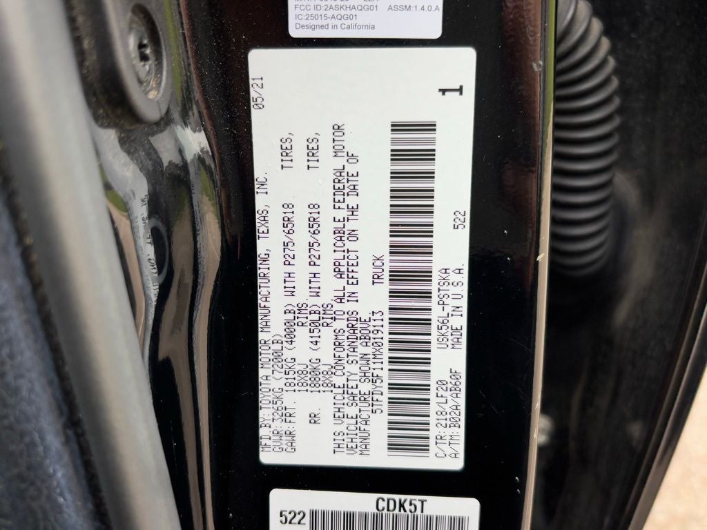 Midnight Black Metallic 2021 Toyota Tundra TRD Pro 4WD 6-Speed Automatic Electronic i-Force 5.7L V8 DOHC 32V LEV