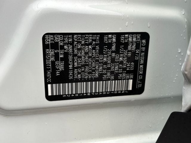 Pearl White Tricoat/Super Black 2023 Nissan Rogue SV FWD CVT with Xtronic 1.5L I3 Turbocharged DOHC 12V LEV3-ULEV50 201hp