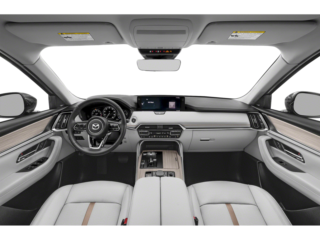 12 Speakers, 3.692 Axle Ratio, 3rd row seats: bench, 4-Wheel Disc Brakes, ABS brakes, Air Conditioning, Alloy wheels, AM/FM radio: SiriusXM, Auto High-beam Headlights, Auto-dimming door mirrors, Auto-dimming Rear-View mirror, Automatic temperature control, Brake assist, Bumpers: body-color, Cargo Net, Compass, Crossbars in Silver, Delay-off headlights, Driver door bin, Driver vanity mirror, Dual front impact airbags, Dual front side impact airbags, E911 Automatic Emergency Notification, Electronic Stability Control, Emergency communication system: MAZDA CONNECT, Four wheel independent suspension, Front anti-roll bar, Front Bucket Seats, Front Center Armrest w/Storage, Front dual zone A/C, Front reading lights, Fully automatic headlights, Garage door transmitter: HomeLink, Heads-Up Display, Heated door mirrors, Heated Front Bucket Seats, Heated front seats, Heated steering wheel, Illuminated entry, Infotainment System Voice Command, Knee airbag, Leather Shift Knob, Leather steering wheel, Low tire pressure warning, Mazda Connected Services, Mazda Navigation System, Memory seat, Nappa Leather Seat Trim, Navigation system: MAZDA CONNECT, Occupant sensing airbag, Outside temperature display, Overhead airbag, Overhead console, Pandora Internet Radio Integration, Panic alarm, Passenger door bin, Passenger vanity mirror, Power door mirrors, Power driver seat, Power Liftgate, Power moonroof, Power passenger seat, Power steering, Power windows, Radio Broadcast Data System Program Information, Radio data system, Radio: AM/FM w/Bose Audio Sound System, Rain sensing wipers, Rear air conditioning, Rear anti-roll bar, Rear reading lights, Rear window defroster, Rear window wiper, Remote keyless entry, Rhodium White Premium Paint Charge, Security system, SMS Text Msg Audio Delivery & Reply, Speed control, Speed-sensing steering, Split folding rear seat, Spoiler, Steering wheel memory, Steering wheel mounted audio controls, Tachometer, Telescoping steering wheel, Tilt steering wheel, Traction control, Trip computer, Turn signal indicator mirrors, Variably intermittent wipers, and Wheels: 21 x 9.5J Aluminum Alloy.