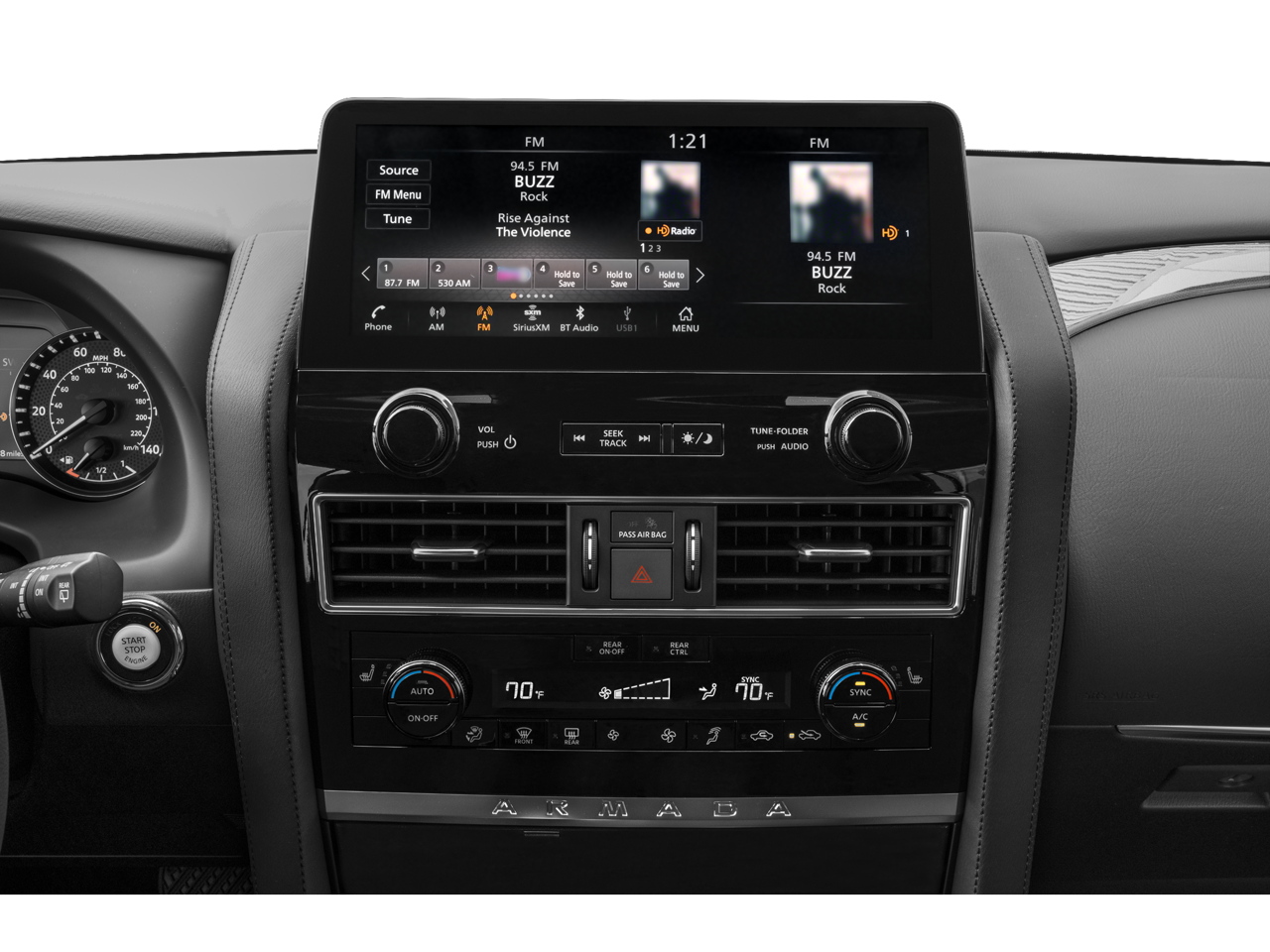 - Radio: NissanConnect w/SiriusXM -inc: 6 speaker audio system, Alexa built-in, wireless Apple CarPlay, Android Auto, Nissan door to door navigation, 12.3" color display w/multi-touch control, SiriusXM Traffic and Travel Link w/3 month complimentary trial access, NissanConnect Services powered by SiriusXM, Bluetooth® hands-free phone system, hands-free text messaging assistant, enhanced voice recognition, USB port for compatible devices, HD Radio technology and Wi-Fi hotspot