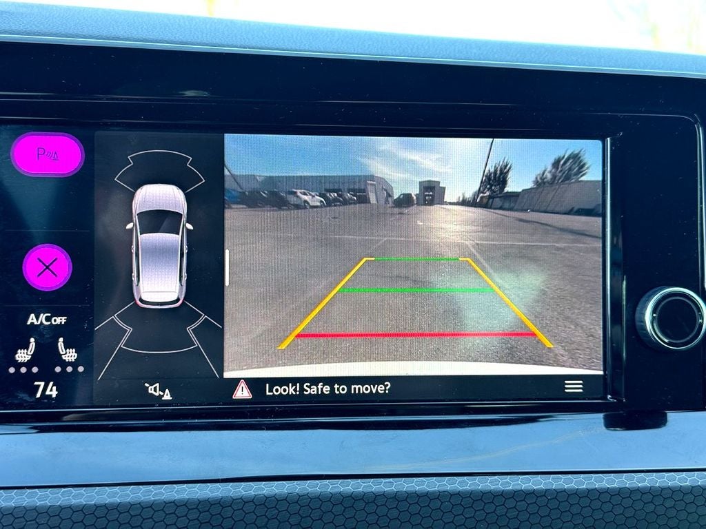 4-Wheel Disc Brakes, 7 Speakers, ABS brakes, Air Conditioning, Alloy wheels, AM/FM radio, Auto-dimming Rear-View mirror, Automatic temperature control, Brake assist, Bumpers: body-color, Cloth Seating Surfaces, Compass, Delay-off headlights, Driver door bin, Driver vanity mirror, Dual front impact airbags, Dual front side impact airbags, Electronic Stability Control, Emergency communication system: VW Car-Net Safe & Secure 5-year, Exterior Parking Camera Rear, Forward collision: FCW w/Autonomous Emergency Braking mitigation, Four wheel independent suspension, Front anti-roll bar, Front Bucket Seats, Front Center Armrest, Front fog lights, Front reading lights, Fully automatic headlights, Heated door mirrors, Heated front seats, Heated Front Top Sport Seats, Heated steering wheel, Illuminated entry, Lane Departure Warning System, Leather steering wheel, Low tire pressure warning, Occupant sensing airbag, Outside temperature display, Overhead airbag, Overhead console, Panic alarm, Passenger door bin, Passenger vanity mirror, Power door mirrors, Power driver seat, Power passenger seat, Power steering, Power windows, Radio data system, Radio: MIB3 Composition Color w/8.25 Touchscreen, Rain sensing wipers, Rear anti-roll bar, Rear reading lights, Rear seat center armrest, Rear window defroster, Rear window wiper, Remote keyless entry, Security system, Speed control, Speed-sensing steering, Speed-Sensitive Wipers, Split folding rear seat, Spoiler, Sport steering wheel, Steering wheel mounted audio controls, Tachometer, Telescoping steering wheel, Tilt steering wheel, Traction control, Trip computer, Turn signal indicator mirrors, Variably intermittent wipers, and Wheels: 18 2-Tone Machined Alloy.